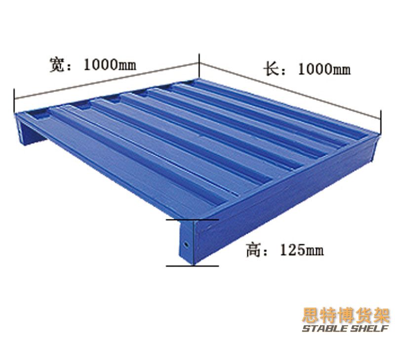 鋼制托盤(鋼托盤)適合叉車作業(yè),存取貨物方便。主要用于多用途的地面存儲(chǔ)、貨架存儲(chǔ)及貨物聯(lián)運(yùn)、周轉(zhuǎn)等超輕金屬托盤系列。集裝、堆放、搬運(yùn)和運(yùn)輸?shù)姆胖米鳛閱卧?fù)荷的水平平臺(tái)裝置。鋼制托盤是現(xiàn)在工業(yè)重要的倉(cāng)儲(chǔ)與運(yùn)輸輔助設(shè)備之一。鋼制托盤主要材料為鋼材或鍍鋅鋼板,經(jīng)專用設(shè)備成型,各種型材互相支撐,鉚釘連接加強(qiáng)