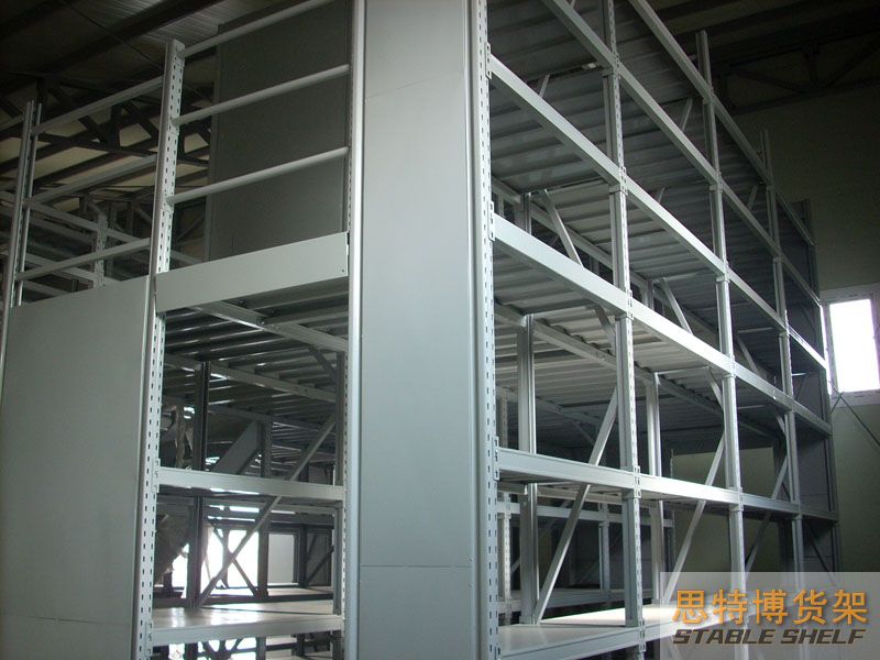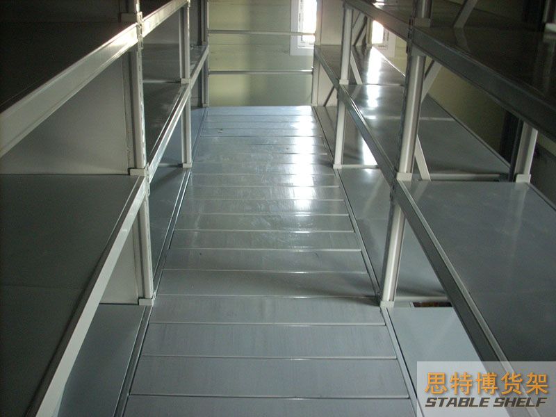 Mezzanine racking systems usually use medium-sized shelves or heavy-duty shelves as the main support plus floor panels (the type of shelf used is determined based on the total load weight of the shelf unit). The floor panels usually use cold-rolled steel floor slabs and patterned steel floor slabs. or steel grating floor slabs.