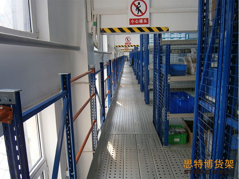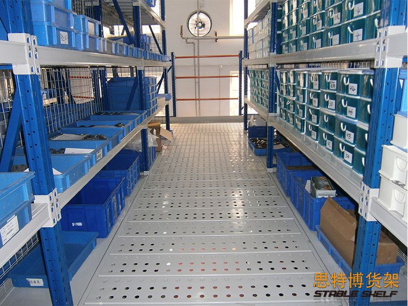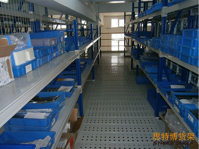 Mezzanine racking systems usually use medium-sized shelves or heavy-duty shelves as the main support plus floor panels (the type of shelf used is determined based on the total load weight of the shelf unit). The floor panels usually use cold-rolled steel floor slabs and patterned steel floor slabs. or steel grating floor slabs.