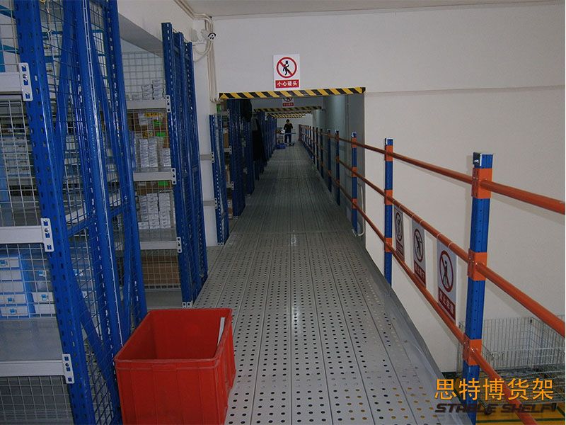 The floor of the mezzanine shelf is laid with special floor slabs for shelves. Compared with patterned steel plates or rigid gratings, it has the characteristics of stronger layer load capacity, good integrity, uniform layer load, smooth surface, and easy locking.