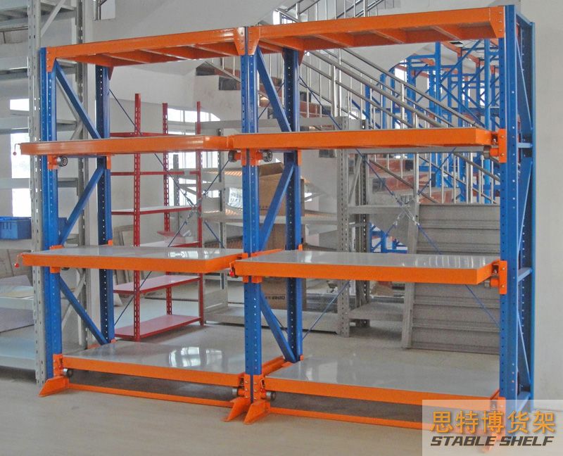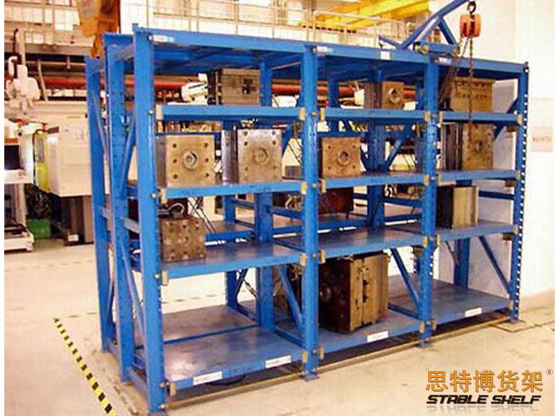 模具貨架是貨架的一種,簡稱:模具架,主要存放各種模具物品,根據(jù)層載能力要求分為輕型模具貨架和重型模具貨架。模具架主要用于放置各類塑膠模具、五金模具、壓鑄模具、粉末冶金模具、擠壓模具。貨架頂部可配置移動(dòng)葫蘆車,以方便模具的起吊。模具貨架又稱模具架或抽屜式貨架,主要存放各種模具物品,貨架頂部可配置移動(dòng)葫蘆車,以方便模具的起吊。安全可靠附加保險(xiǎn)裝置;操作輕便采用軸承組合,滑動(dòng)平衡并附獨(dú)立吊模裝置;節(jié)省場地,占地面積積為1.8平方米,可存放幾十套中小型模具;結(jié)構(gòu)簡單,由多種組合部件組裝而成,便于拆卸、運(yùn)輸和組裝;抽屜式模具架每格每層承重800-1000KG;節(jié)省空間,每格可放多套模具,方便模具保養(yǎng)管理和尋找;模架抽板承載后輕松抽送,上下間隔隨意調(diào)整,協(xié)同備有的滑車和手動(dòng)葫蘆可輕松、快捷的完成存取工作;模架采取可拆移式結(jié)構(gòu),全部配件可任意組合,上下間隔,拆裝簡便。