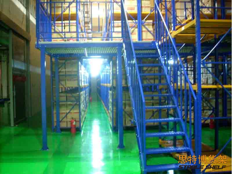 鋼制平臺(tái)貨架是在廠房面積有限的情況下采用貨架作為閣樓支撐,并可以設(shè)計(jì)多層(通常2~3層)的存儲(chǔ)貨架,閣樓可以采用樓梯或者液壓升降平臺(tái)做為登高設(shè)施,利用金屬專用樓板作為樓層區(qū)分,每層可以放置不同物品的貨架,貨架結(jié)構(gòu)具有支撐上層樓板的作用。適用于庫房較高、存儲(chǔ)量大的倉庫,廣泛應(yīng)用于汽車、電子、機(jī)械等領(lǐng)域。