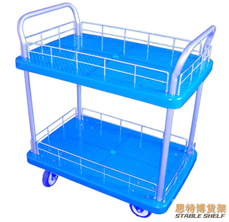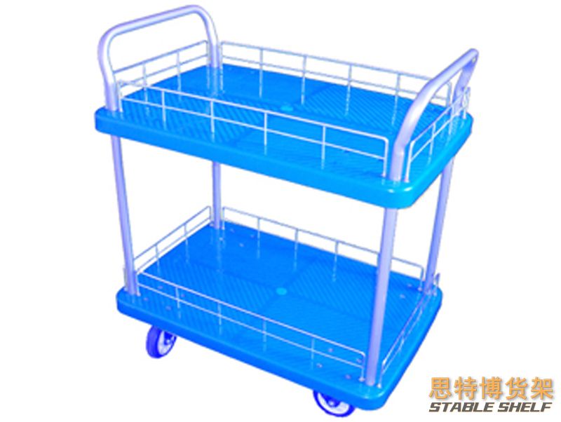 適于搬運(yùn)重量輕而便于裝卸的物品;有的車體伸出托架,便于安放桿、軸和管子等零
