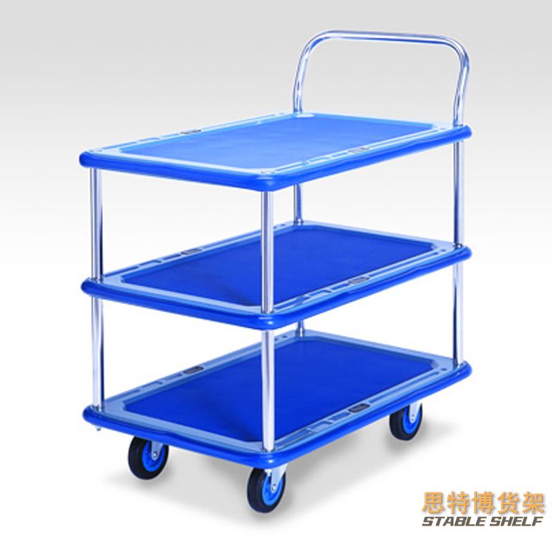 適于搬運(yùn)重量輕而便于裝卸的物品;有的車體伸出托架,便于安放桿、軸和管子等零