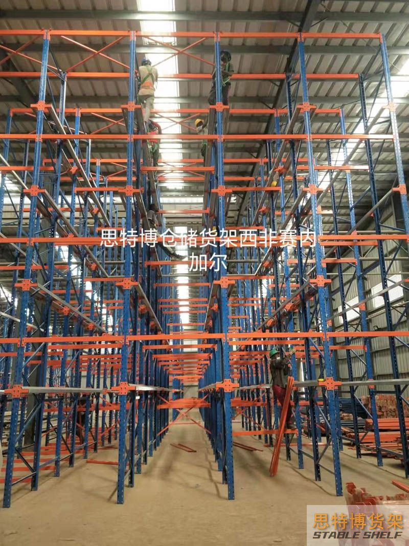 The principle of the through-type shelf structure is to connect several rows of column pieces. There is no cross-beam structure, and it is supported by the top beam. It is formed by connecting the corbels to the pallet guide rails. The pallet goods are placed on the pallet guide rails.Forklifts can drive directly into the cargo lane to access goods. When storing, go inside first and then outside. When picking up goods, go first outside then inside. With a typical first-in-last-out storage concept, the warehouse space utilization rate is about 70%.The same as the beam rack, first determine the form, specification, size of the pallet, the height and weight of the items, and the parameters of the forklift used. Then count the number of pallets of each variety (SKU) of stored items to determine the height of the rack. , span, depth and floor height, etc., can be customized.