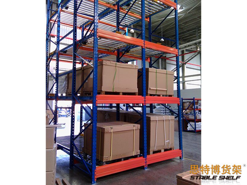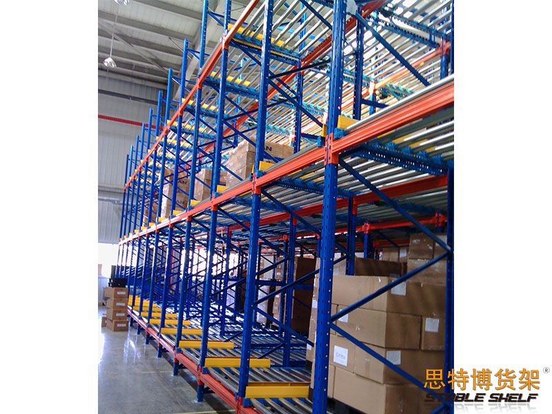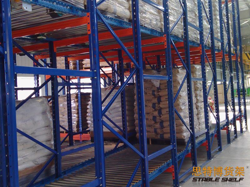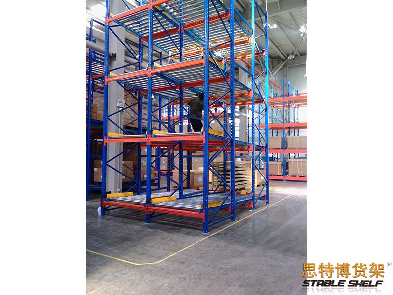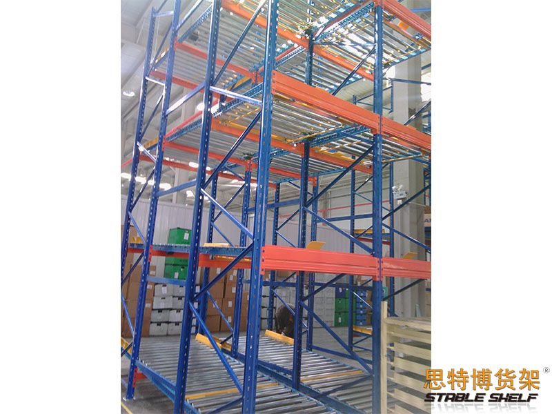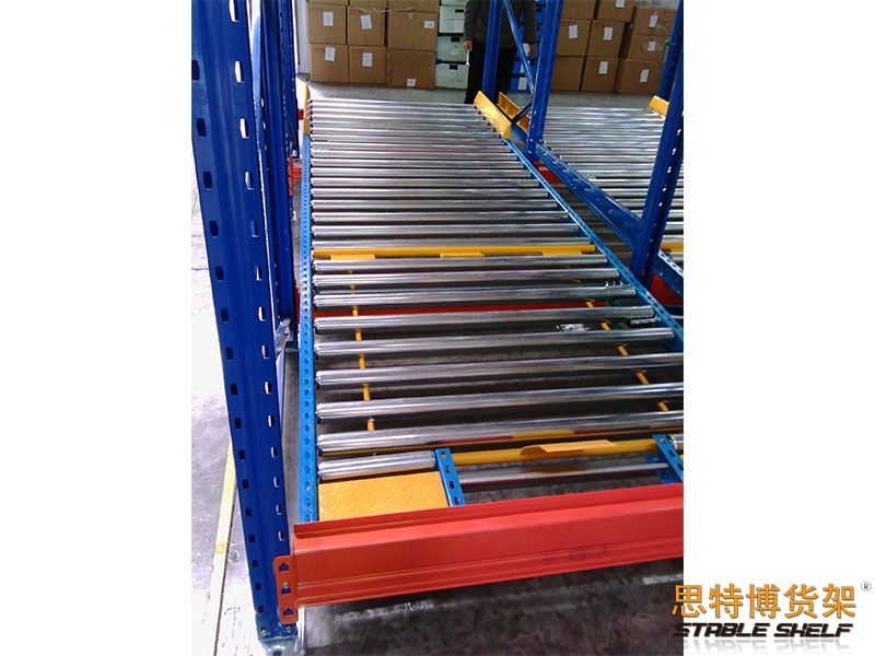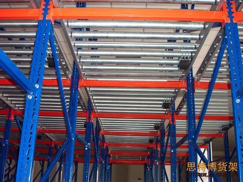 在貨架的組與組之間沒有作業(yè)通道,從而增加了60%的空間利用率,提高了倉儲的容積率;托盤操作遵循先進先出的原則;自動儲存回轉(zhuǎn);儲存和揀選兩個動作的分開大大提高輸出量,由于是自重力使貨物滑動,而且沒有操作通道,所以減少了運輸路線和叉車的數(shù)量