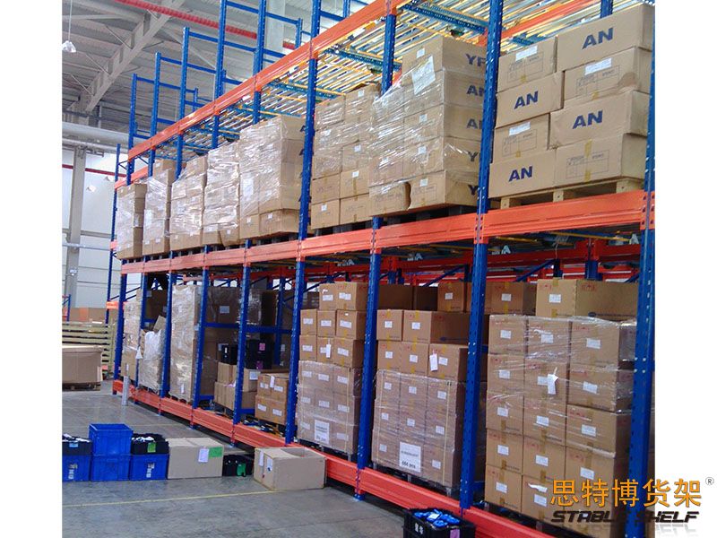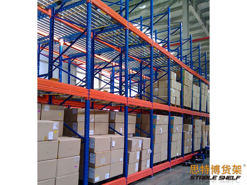 適用于少品種大批量同類貨物的存儲,空間利用率極高,重力式貨架深度及層數(shù)可按需要而定