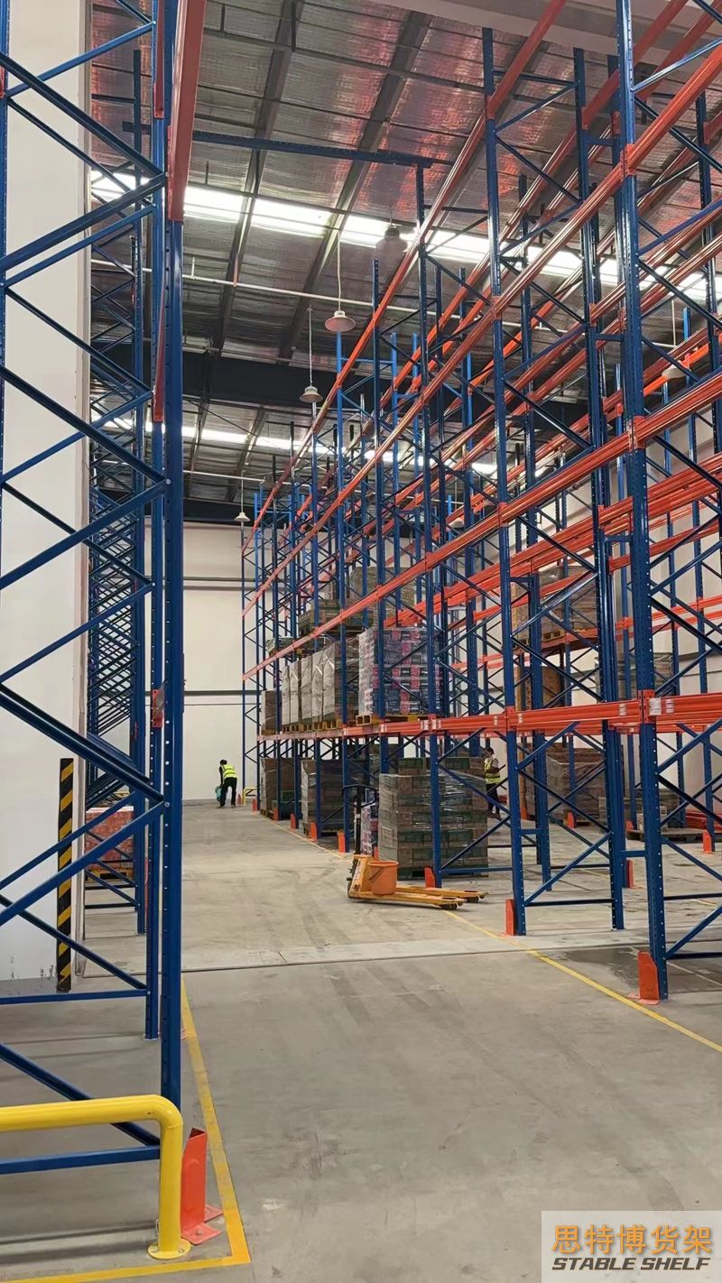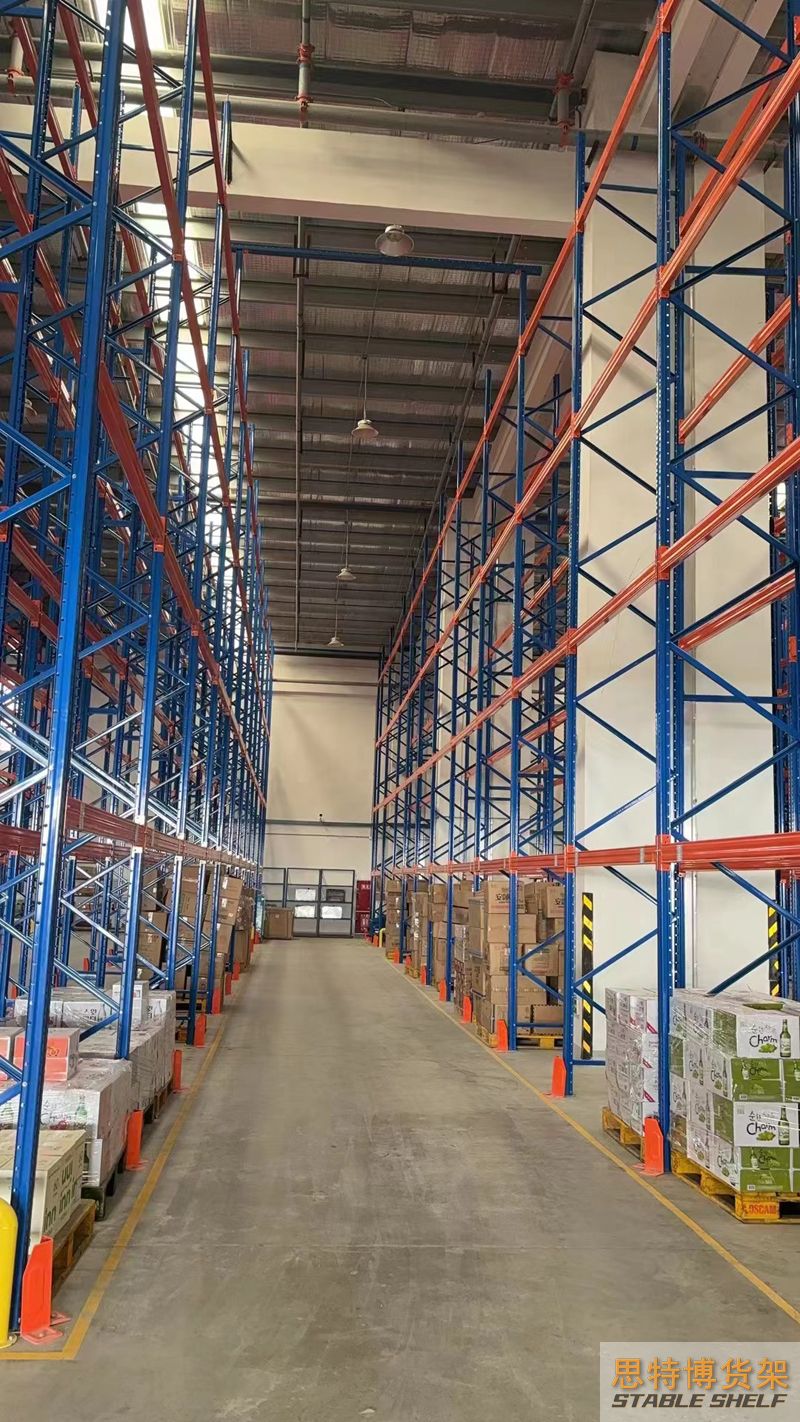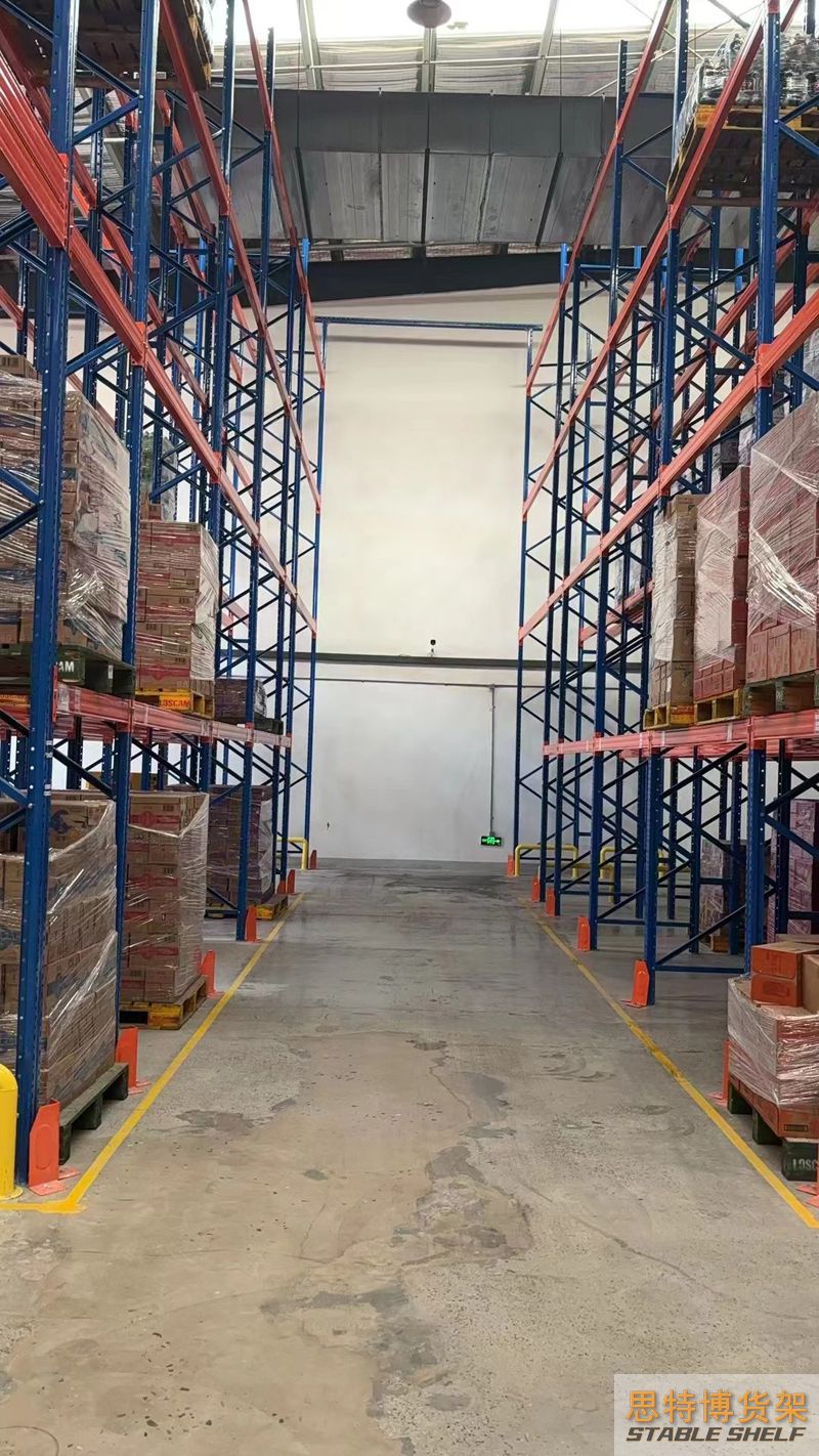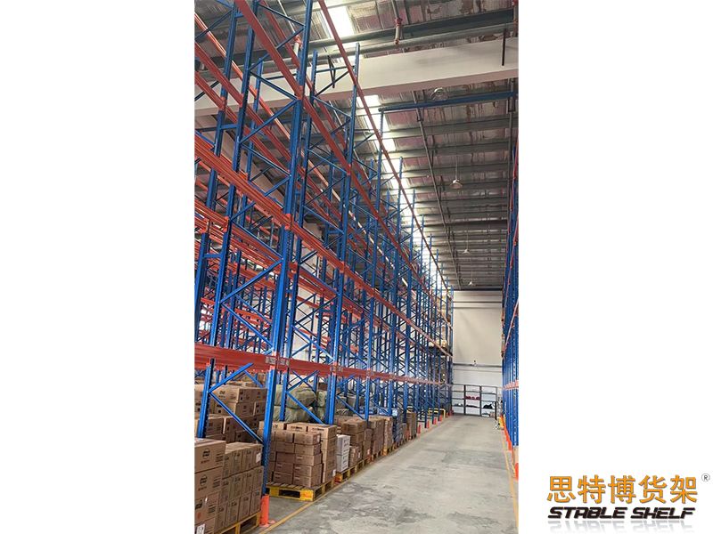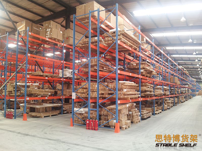 重型貨架是最常用的一種貨架,它具有良好的提取效率。固定架的儲(chǔ)存密度低,儲(chǔ)存的物品較重,必須配合托盤和叉車使用,所以又稱托盤貨架。在使用重型貨架時(shí),必須考慮托盤和貨物的尺寸、重量和堆疊層數(shù),以確定合適的支柱和橫梁尺寸。此外,為提高空間利用率,可減小通道寬度,采用專用堆垛機(jī)的軌道形式,即窄車道式貨架,將存儲(chǔ)空間垂直放置。