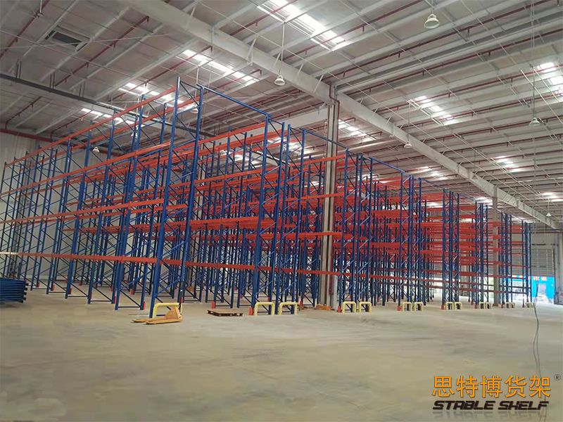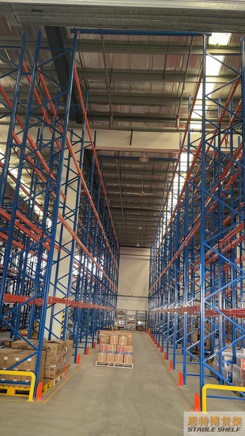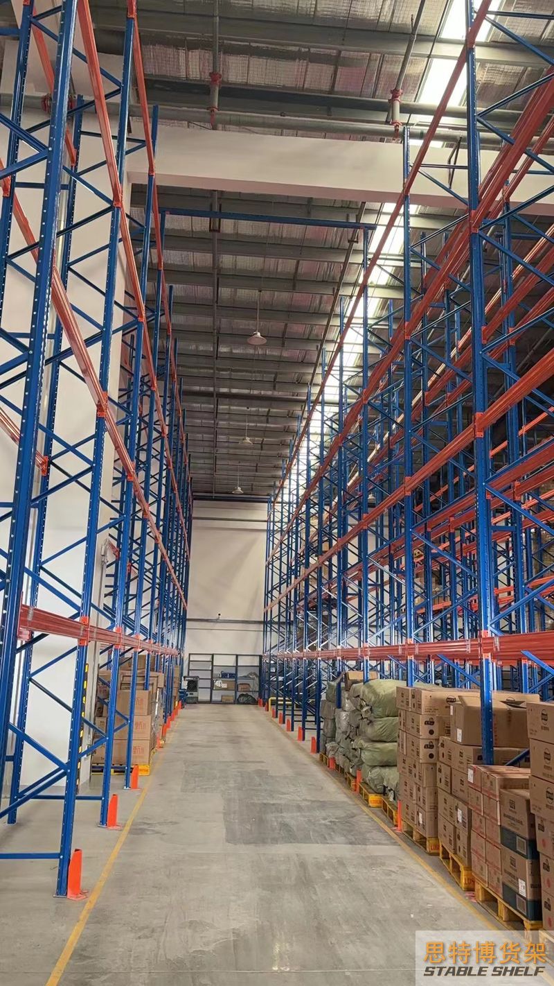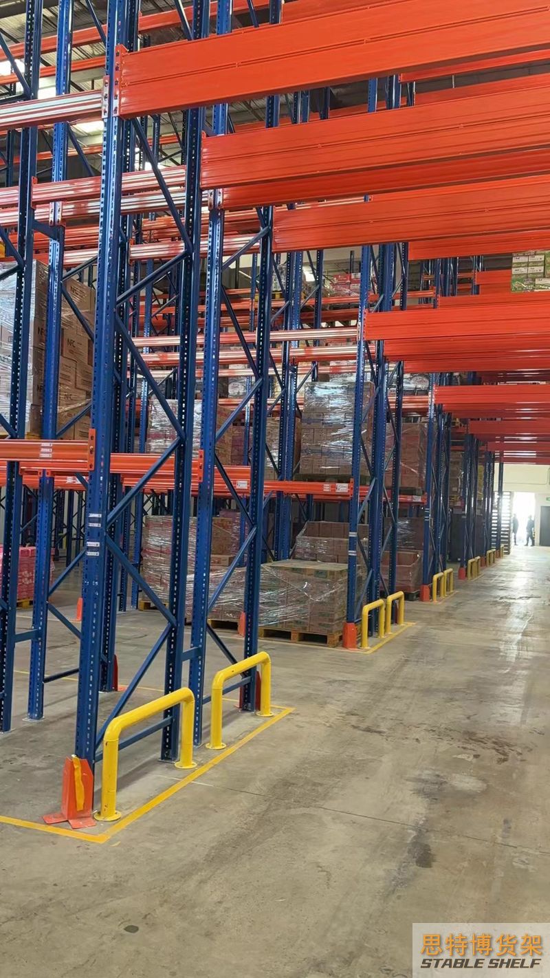 重型貨架是最常用的一種貨架,它具有良好的提取效率。固定架的儲(chǔ)存密度低,儲(chǔ)存的物品較重,必須配合托盤和叉車使用,所以又稱托盤貨架。在使用重型貨架時(shí),必須考慮托盤和貨物的尺寸、重量和堆疊層數(shù),以確定合適的支柱和橫梁尺寸。此外,為提高空間利用率,可減小通道寬度,采用專用堆垛機(jī)的軌道形式,即窄車道式貨架,將存儲(chǔ)空間垂直放置。