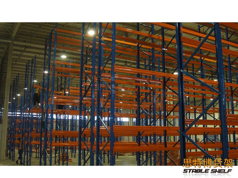 重型貨架是最常用的一種貨架,它具有良好的提取效率。固定架的儲(chǔ)存密度低,儲(chǔ)存的物品較重,必須配合托盤(pán)和叉車(chē)使用,所以又稱(chēng)托盤(pán)貨架。在使用重型貨架時(shí),必須考慮托盤(pán)和貨物的尺寸、重量和堆疊層數(shù),以確定合適的支柱和橫梁尺寸。此外,為提高空間利用率,可減小通道寬度,采用專(zhuān)用堆垛機(jī)的軌道形式,即窄車(chē)道式貨架,將存儲(chǔ)空間垂直放置。