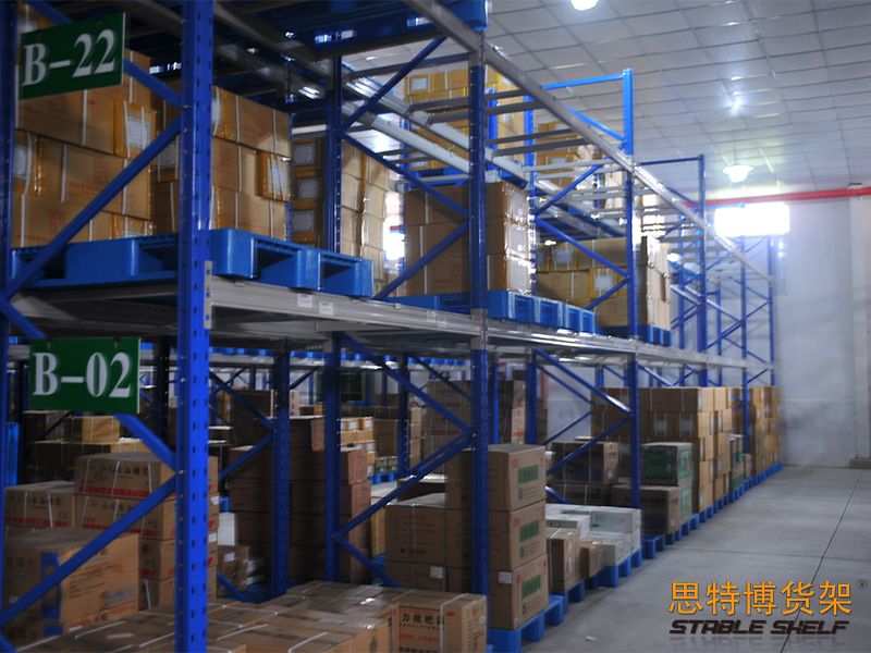 重型貨架是最常用的一種貨架,它具有良好的提取效率。固定架的儲存密度低,儲存的物品較重,必須配合托盤和叉車使用,所以又稱托盤貨架。在使用重型貨架時,必須考慮托盤和貨物的尺寸、重量和堆疊層數(shù),以確定合適的支柱和橫梁尺寸。此外,為提高空間利用率,可減小通道寬度,采用專用堆垛機的軌道形式,即窄車道式貨架,將存儲空間垂直放置。